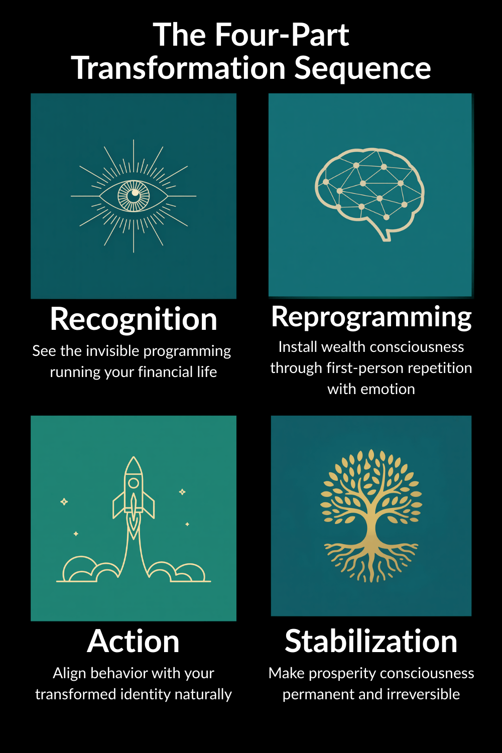 When you combine all four steps, you create a lasting transformation. The affirmations aren’t just feel-good statements; they’re part of a systematic approach to rewiring your brain for financial success.